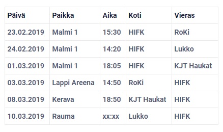 Nyt vastus kovenee merkittävästi, kun vastaan tulee kaksi joukkuetta naisten Liigasta. KJT ja Lukko ovat pelanneet yhtä sarjatasoa ylempänä kuin IFK ja tottuneet siten kovempiin peleihin. Mutta samalla ne ovat saaneet dunkkuun ehtimiseen ja poistuneet valtaosassa pelejä kaukalosta hävinneenä.