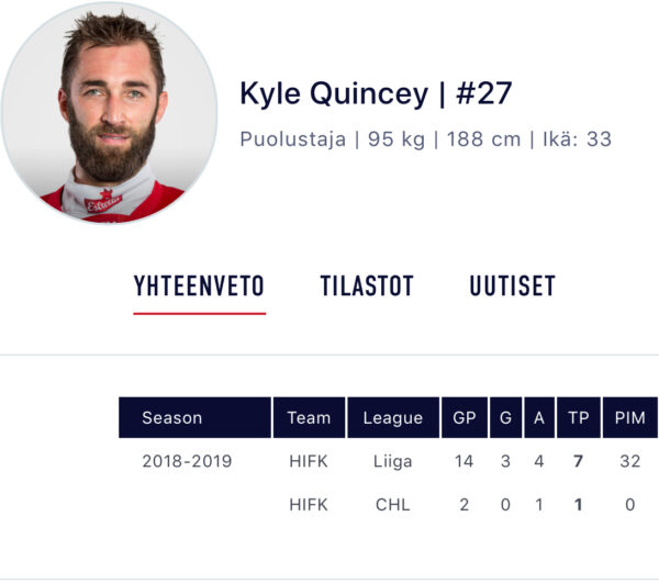 Kyle Quincey on tehnyt Liigassa kolme maalia ja viimeisin niistä syntyi juuri Ässiä vastaan. Puolustaja teki 4–1-osuman omalta kenttäpuoliskolta tyhjään maaliin