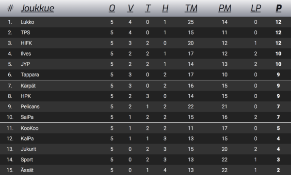 Viiden edellisen ottelun kuntopuntarissa IFK, Lukko sekä Ilves löytyvät kaikki varsin korkealta.