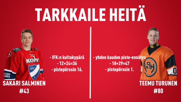 Sakari Salminen teki debyyttinsä IFK-paidassa 11. tammikuuta juuri HPK:ta vastaan. Salminen avasi pistetilinsä uudessa seurassaan syöttämällä yhden osuman 2–3-tappioon päättyneessä ottelussa. Nyt 12 matsia IFK:ssa pelannut porilainen on tärkeä palanen etenkin joukkueen ylivoimaa.
