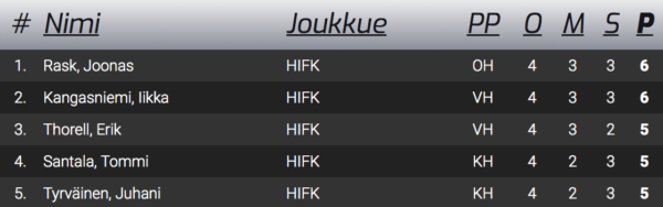Tyrväisen kentällinen on kerännyt ensimmäisestä neljästä liigaottelusta yhteensä 16 pistettä ja kolmikko löytyy IFK:n sisäisestä pistepörssistä viiden parhaan joukosta.