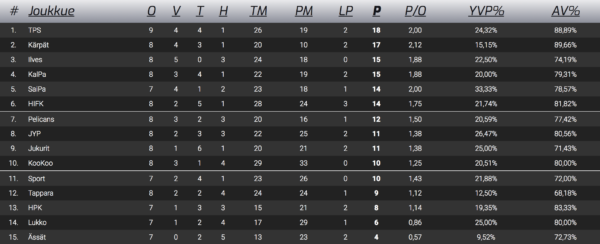Sarjan kuusi parasta joukkuetta ovat neljän pisteen sisällä.