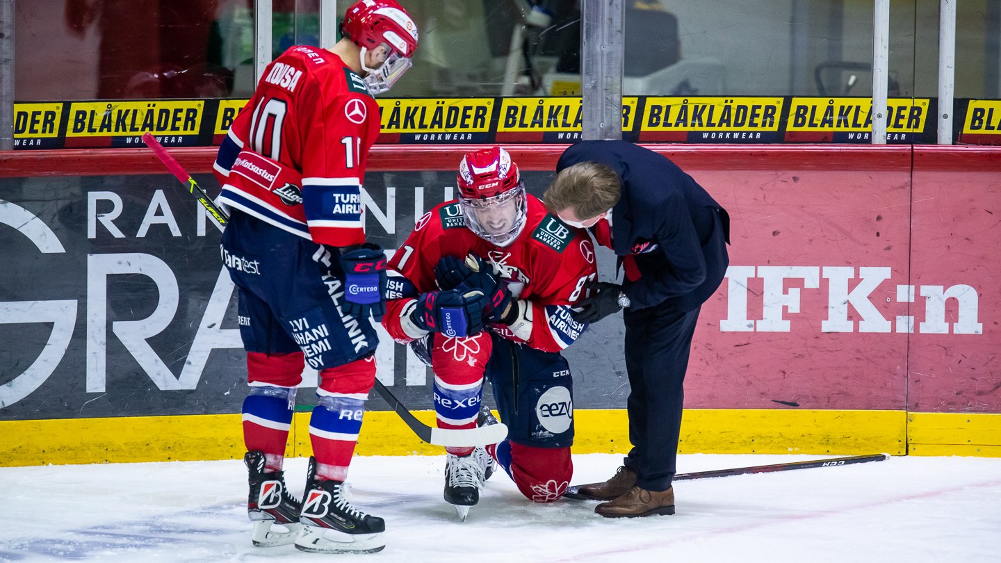 Hetkeä myöhemmin HIFK:n puolustaja Yohann Auvitu joutui taklatuksi puolustuspäädyssä. Ranskalainen loukkasi tilanteessa itseään ja jätti ottelun kesken. Taklauksen antanut TPS:n Aleksi Anttalainen sai tilanteesta suihkukomennuksen.